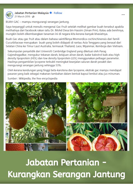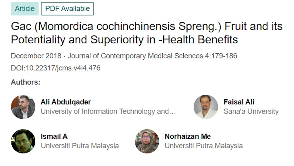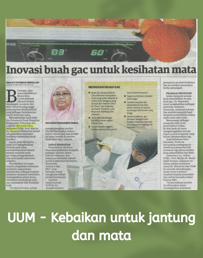 Tidak hanya diperingkat antarabangsa, beberapa saintis dan pakar pemakanan dari universiti tempatan juga telah mengesahkan kebaikan yang terkandung di dalam buah gac dapat membantu tahap kesihatan terutamanya mereka yang mempunyai masalah jantung, darah dan mata.