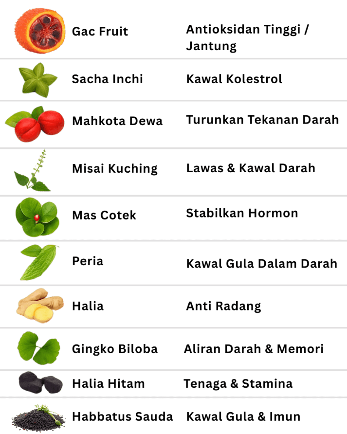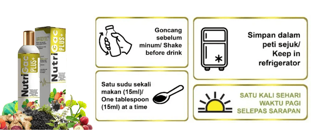 Dengan formula dari 10 herba terpilih yang telah diperakui kebaikannya kepada tubuh badan, kini anda tidak perlu lagi mengamalkan suplimen lain kerana semua yang badan anda perlukan sudah terkandung di dalam NutriGac Plus!