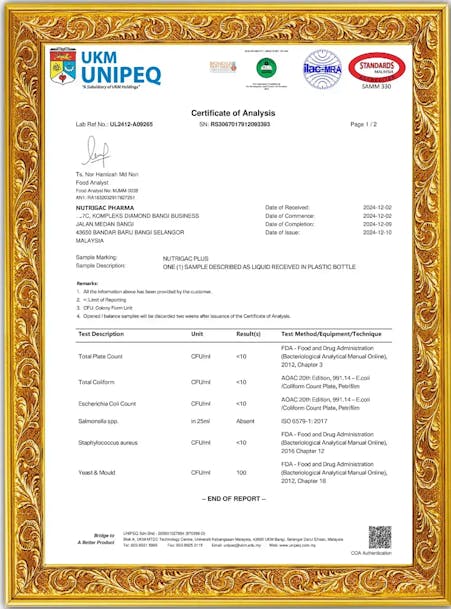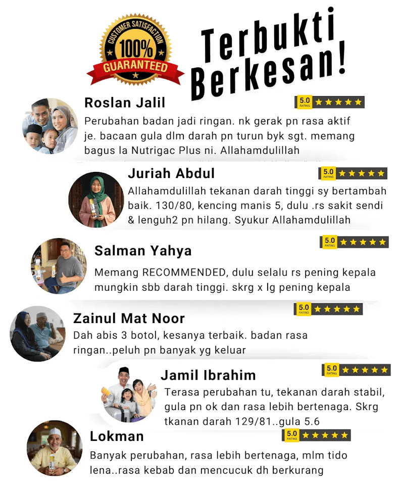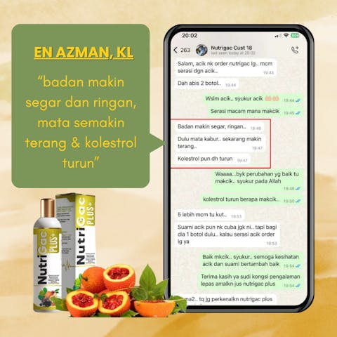 Disclaimer: Testimonials found at www.nutrigacmalaysia.shop/ and/or from Nutrigac Plus are unverified results that have been forwarded to us by users of the product. The results may vary for each individual and are not intended to represent or guarantee that anyone will achieve the same or similar results within a specific period of time.